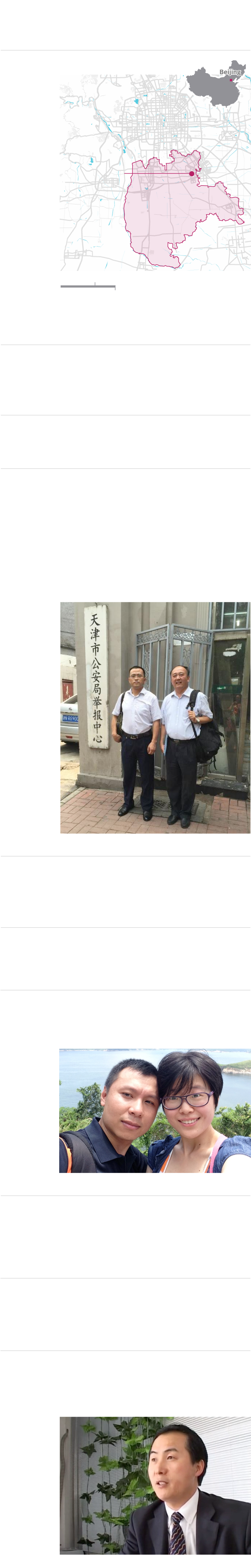 Ma Lianshun, a second lawyer helping with the hunt, arrives in Beijing from Zhengzhou. That afternoon Ma travels to the Boxing Road police station where officers claim police from the nearby city of Tianjin took Li Heping. Police say they have no further information and no obligation to help find Li Heping.