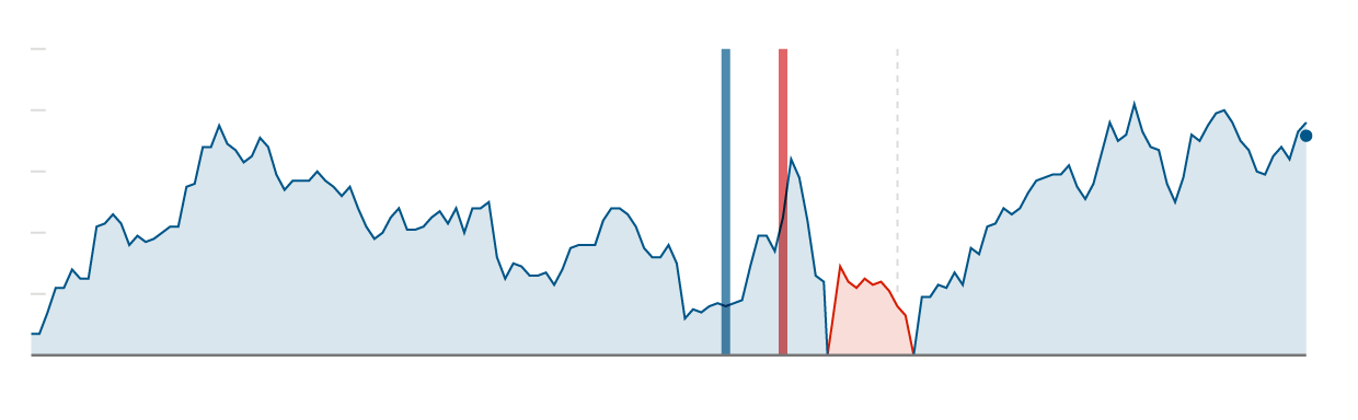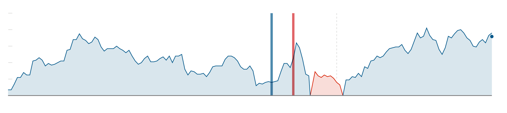 Note: Poll results may not reflect an event until about a week later. Source: Real Clear Politics