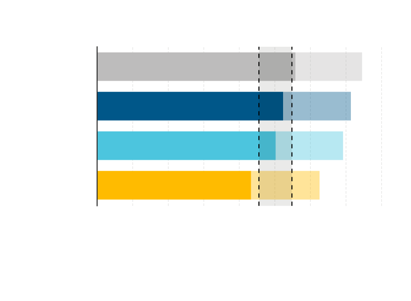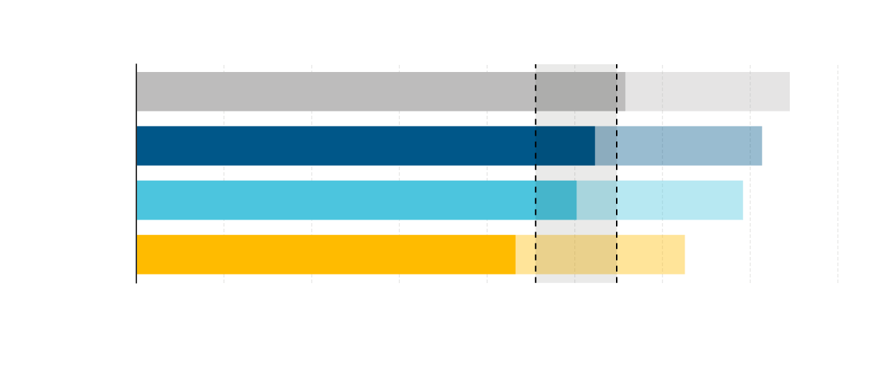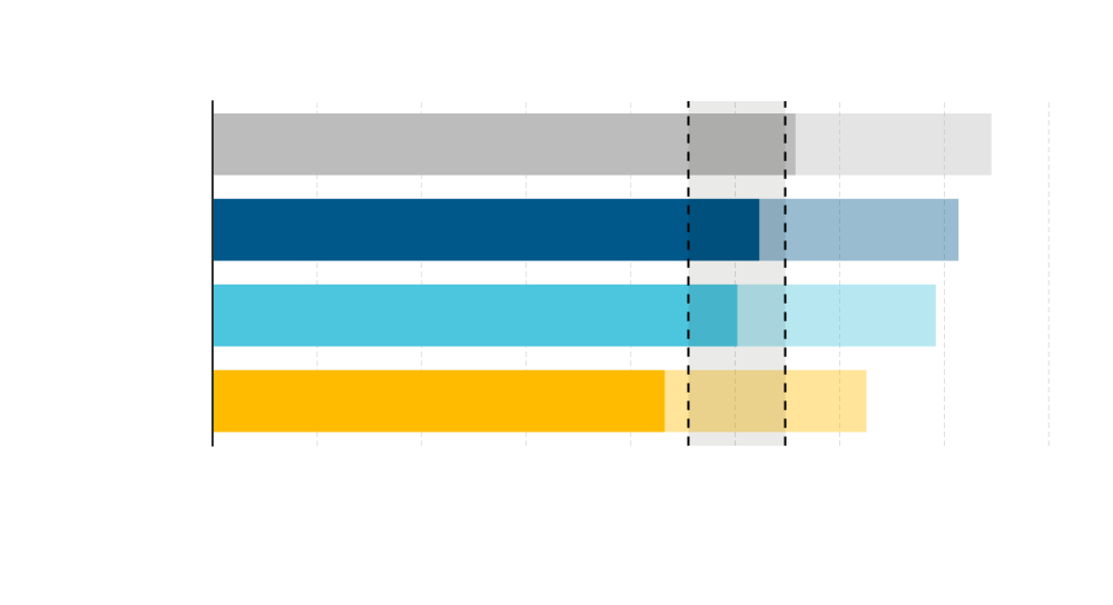 Notes: Lighter colored bars indicate the full uncertainty ranges. *Starred items are proposed