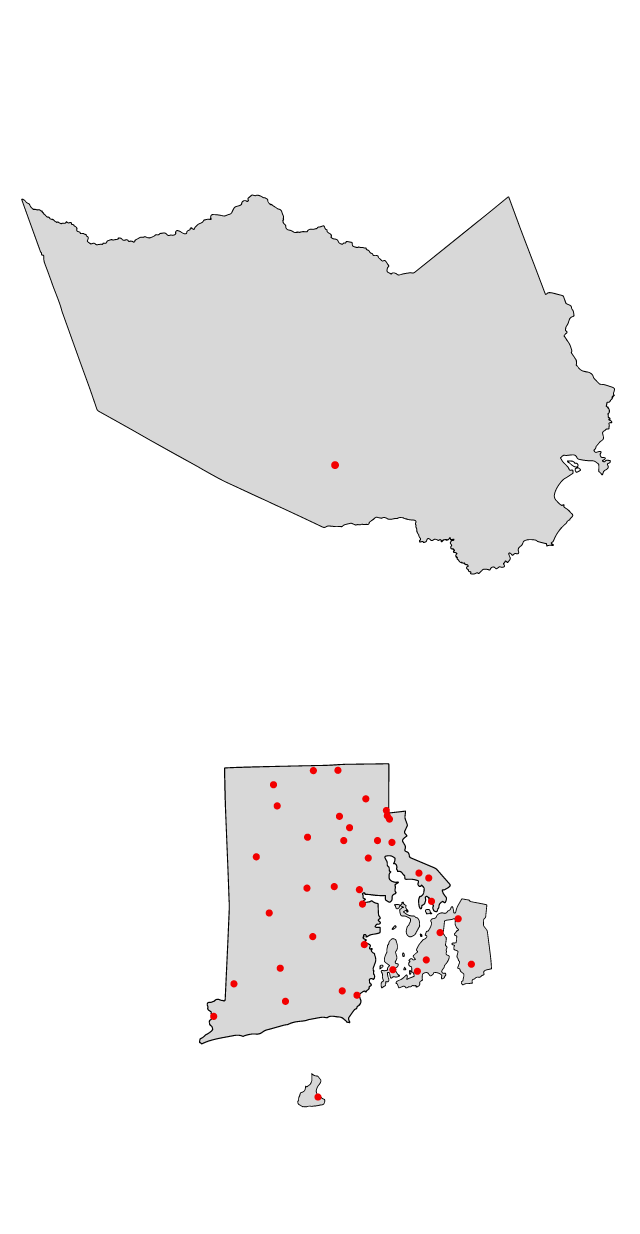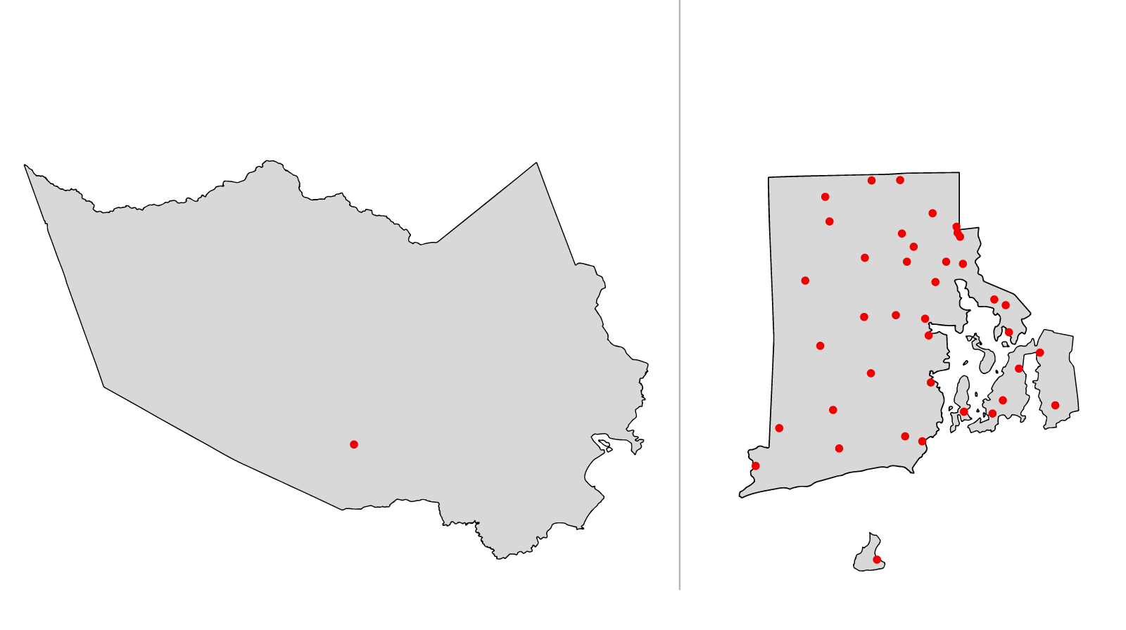 Guardian graphic. Source: Harris County clerk, Rhode Island Board of Elections