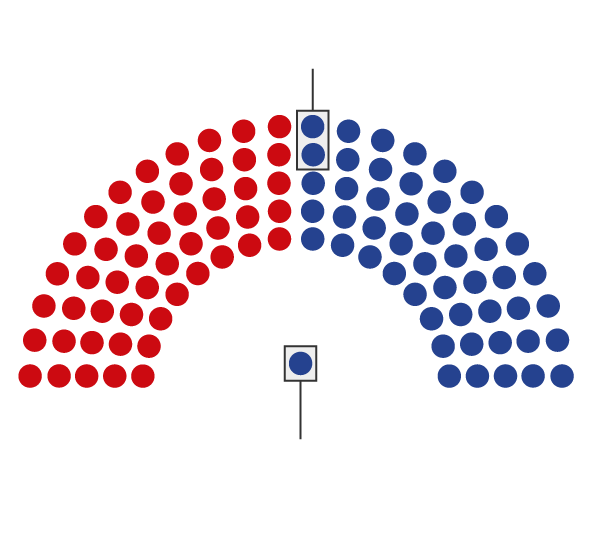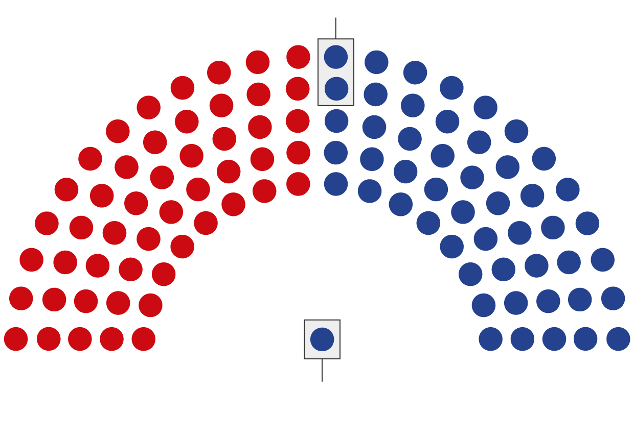 Tie-breaking votes are cast by the vice-president – in this case Democrat Kamala Harris.