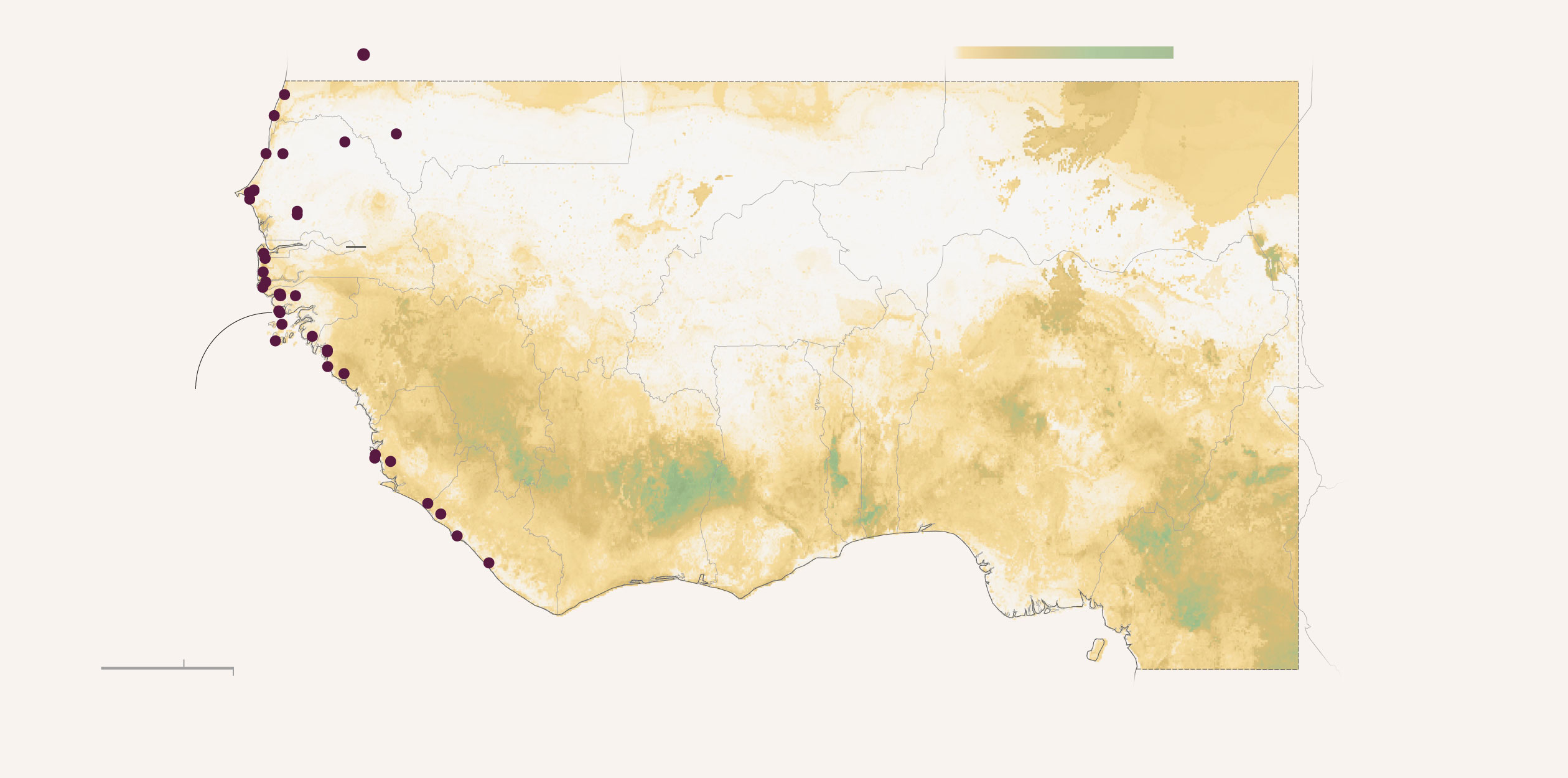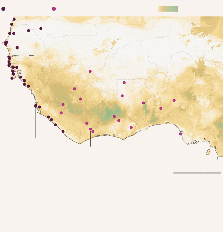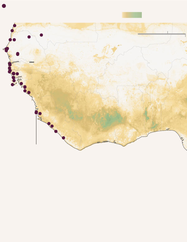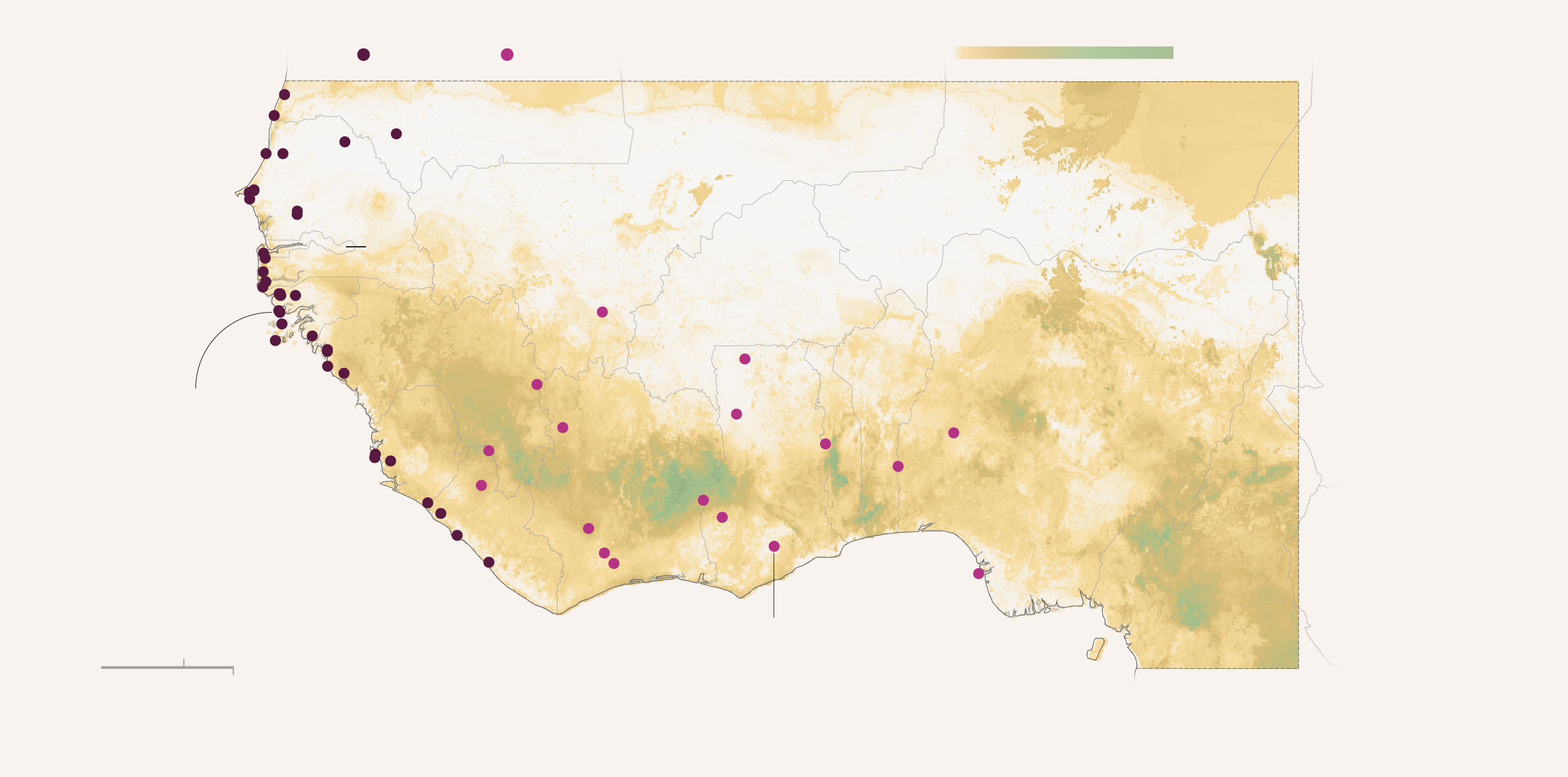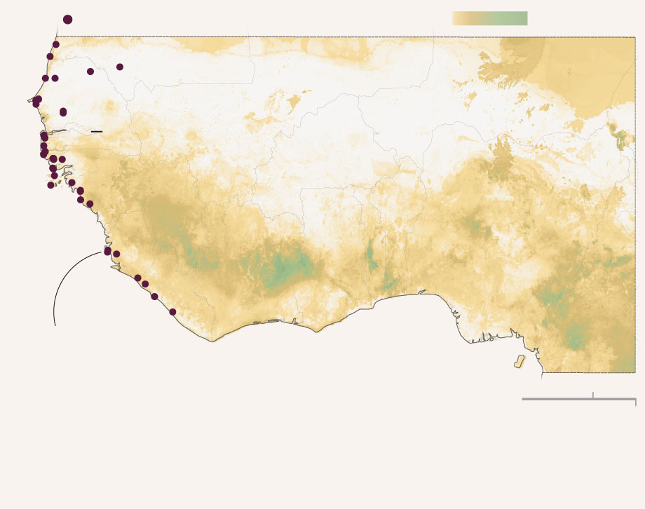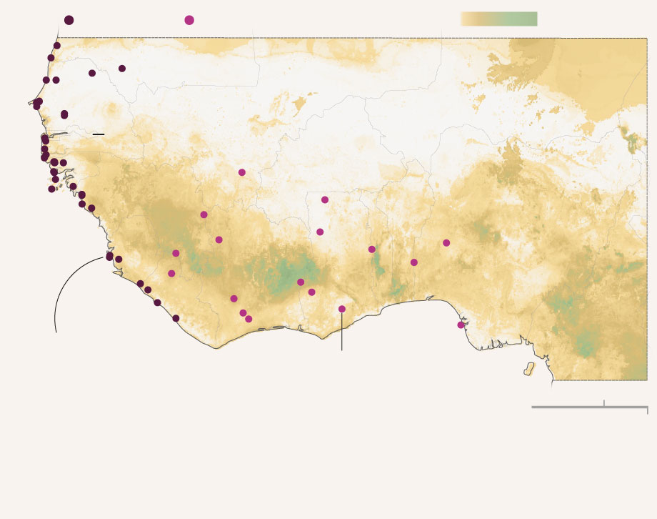 Guardian graphic. Note: Combined measure, estimating habitat suitability between 2010 and 2020, incorporating vegetation condition during the peak of the dry season, elevation