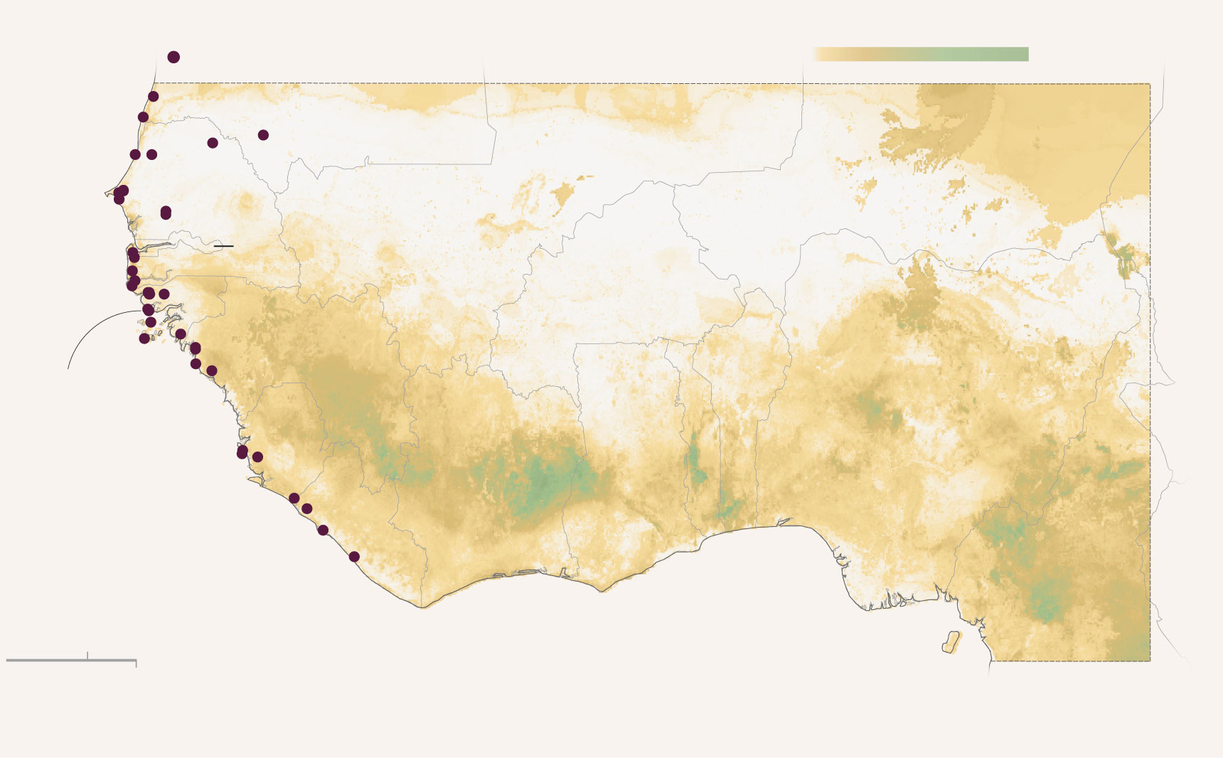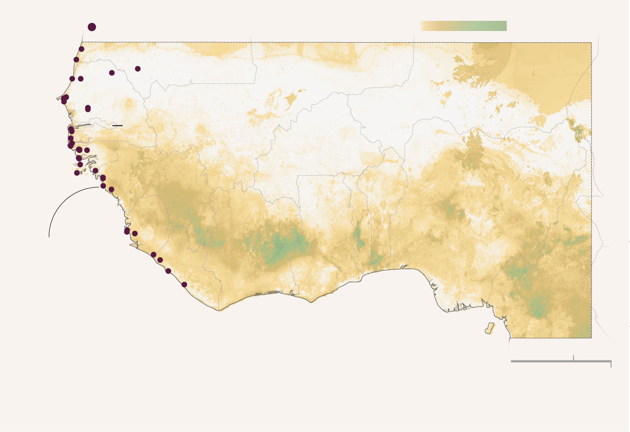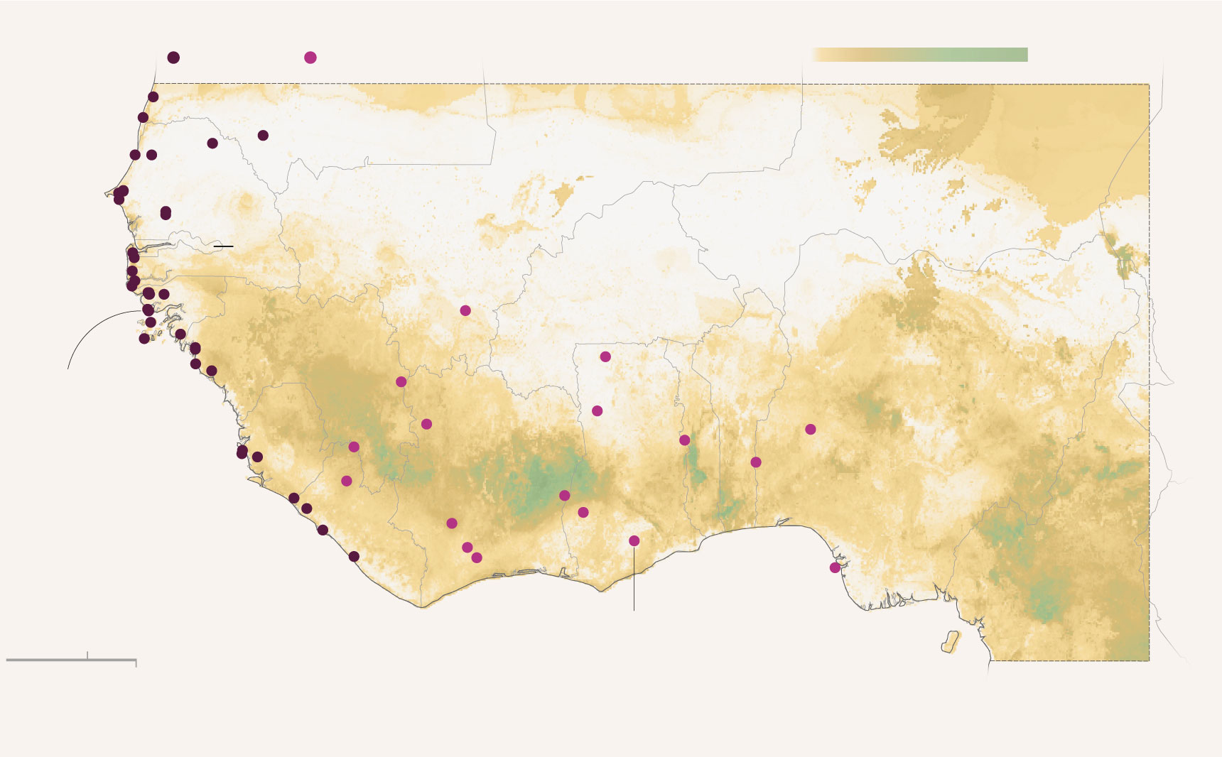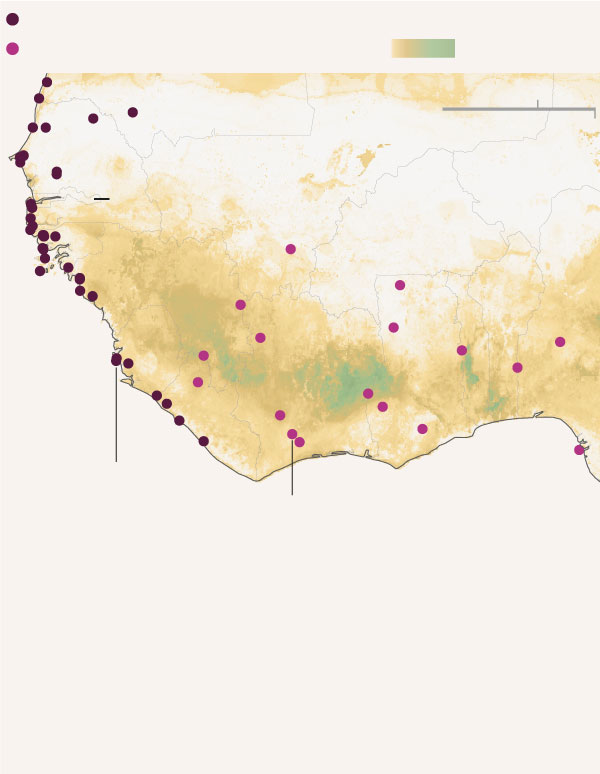 Guardian graphic. Note: Combined measure, estimating habitat suitability between 2010 and 2020, incorporating vegetation condition during the peak of the dry season, elevation