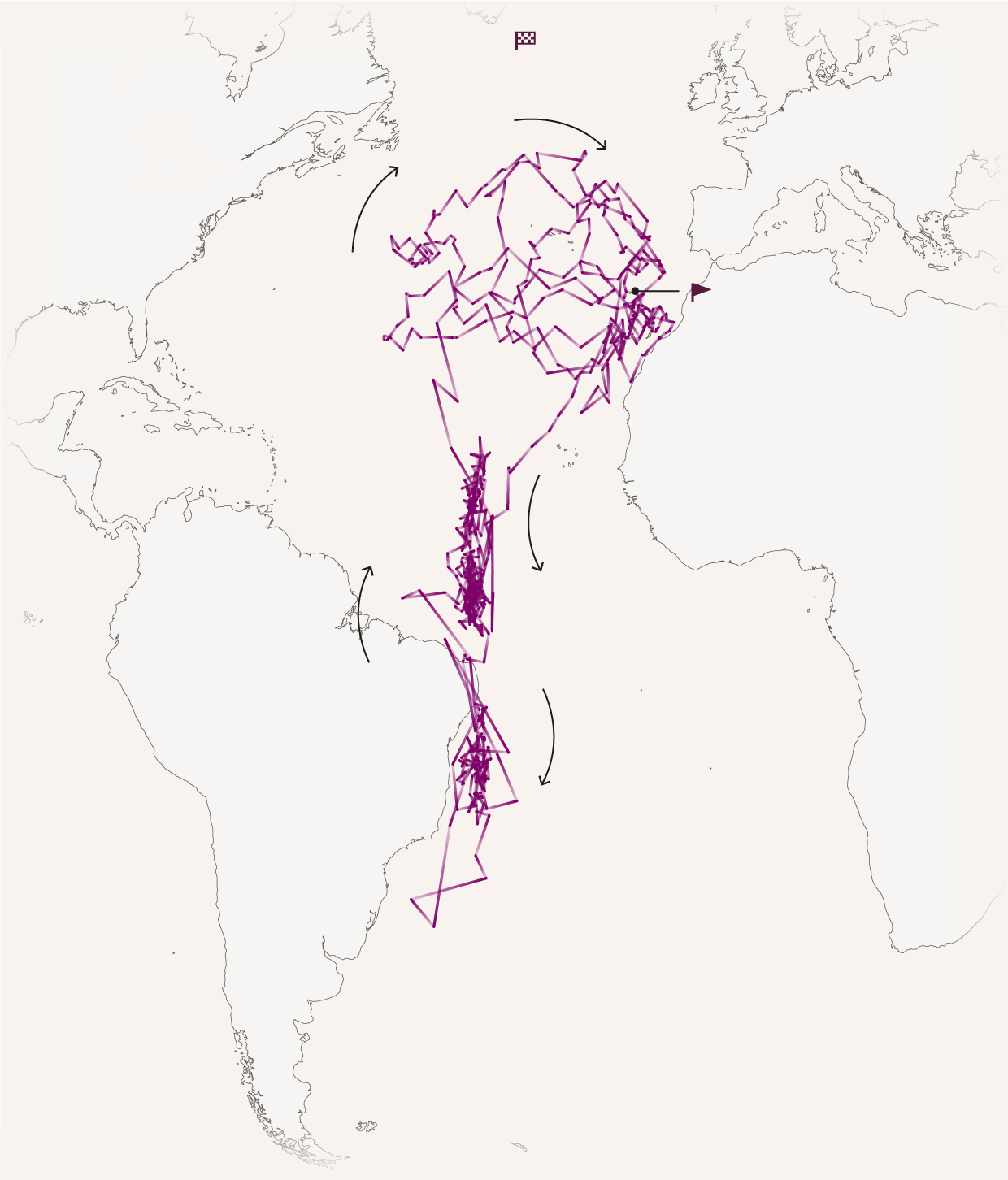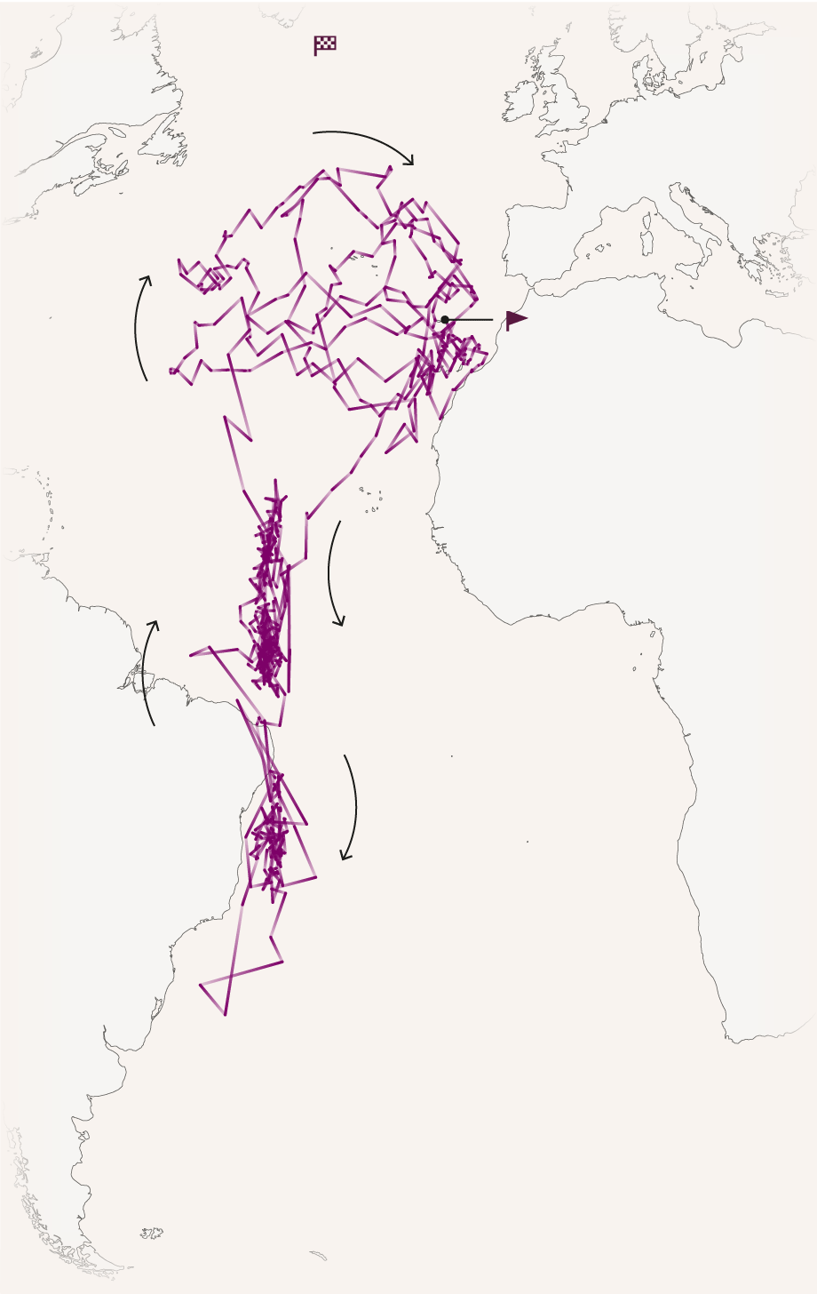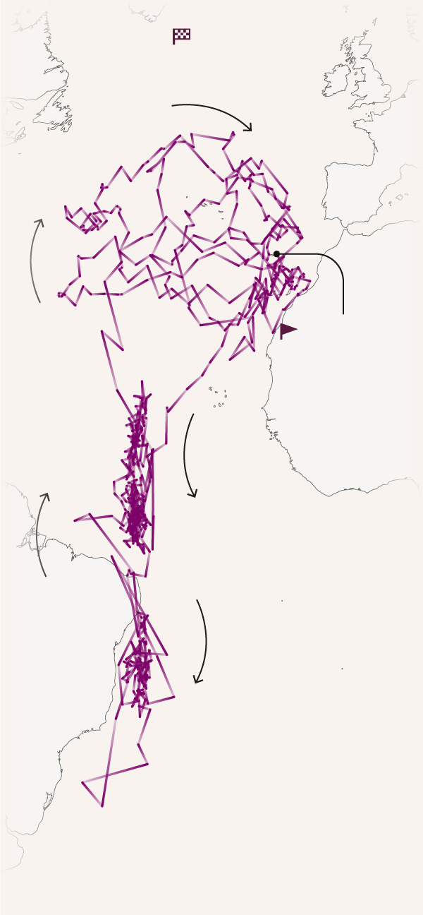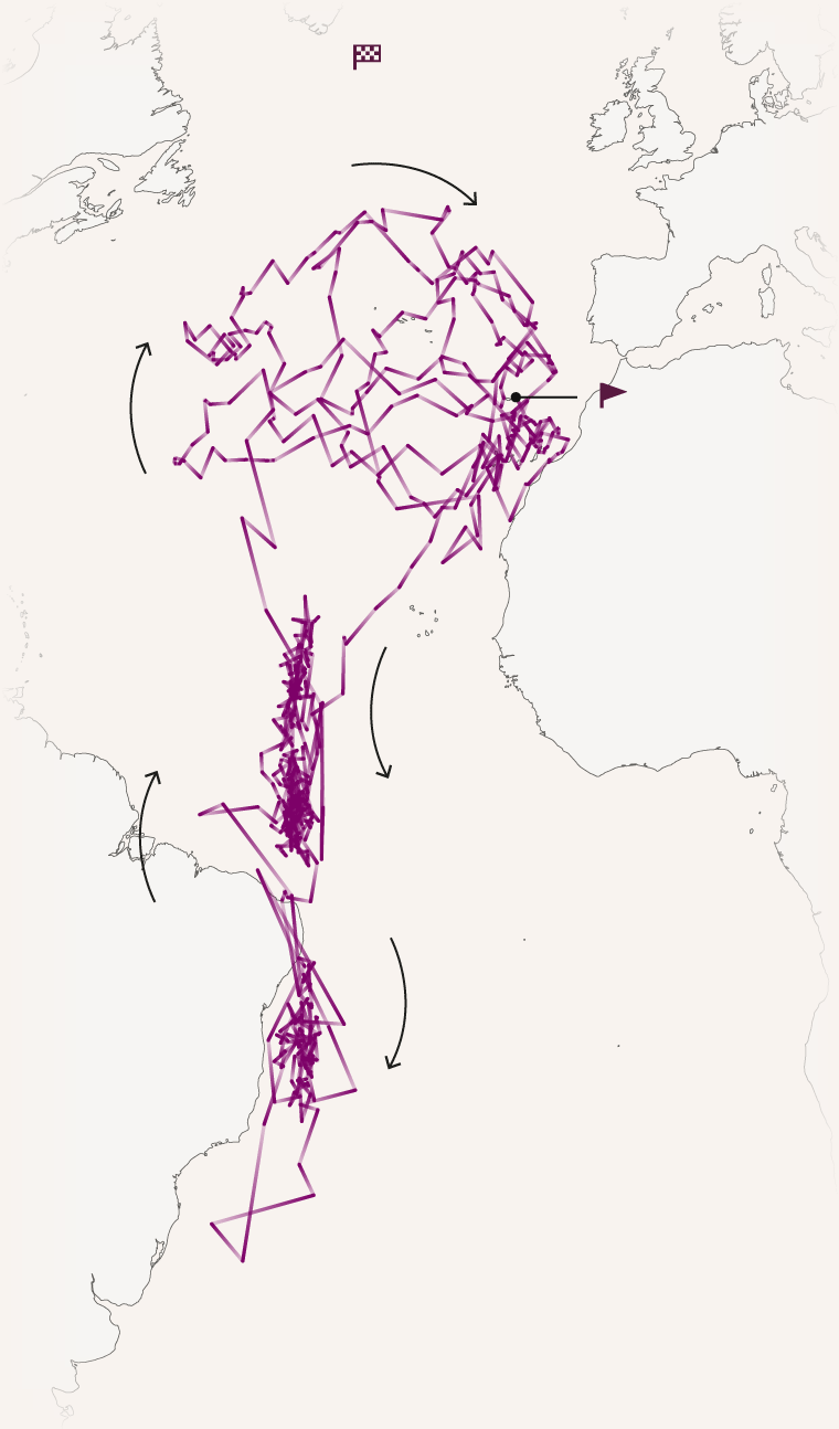 Marlo also makes long foraging trips, shown here as squiggly lines