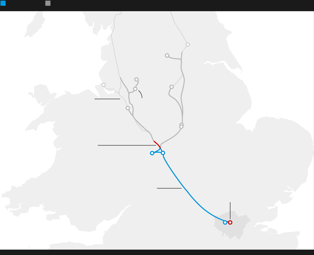 north of Birmingham to Handsacre, Staffordshire, where HS2 will join