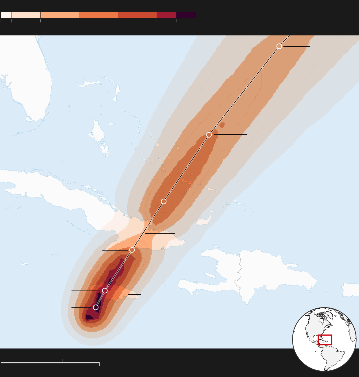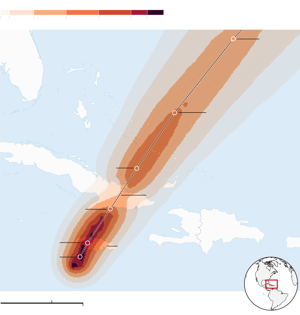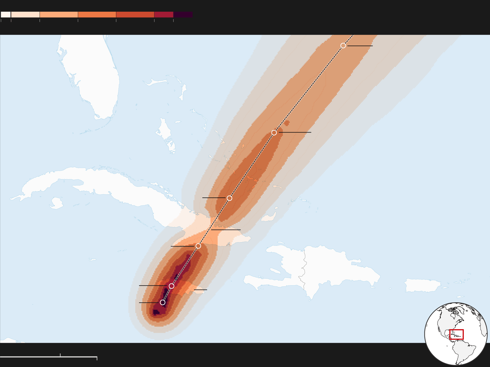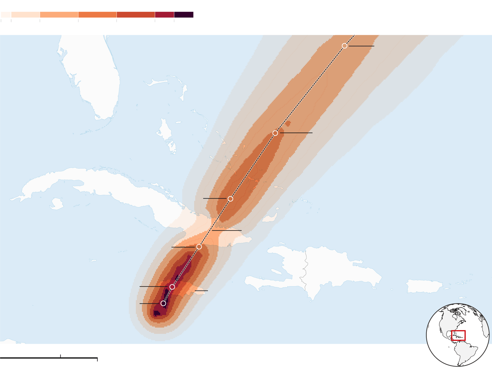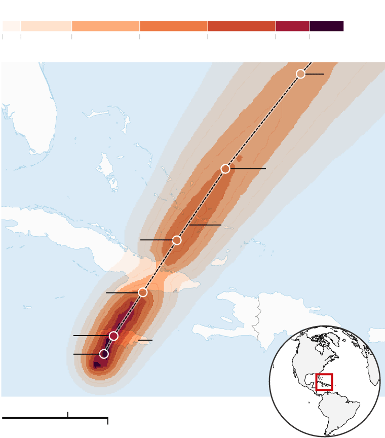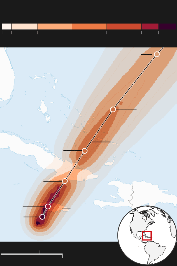 Probability of hurricane-force winds, five-day forecast