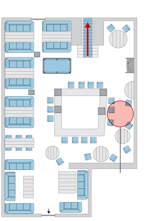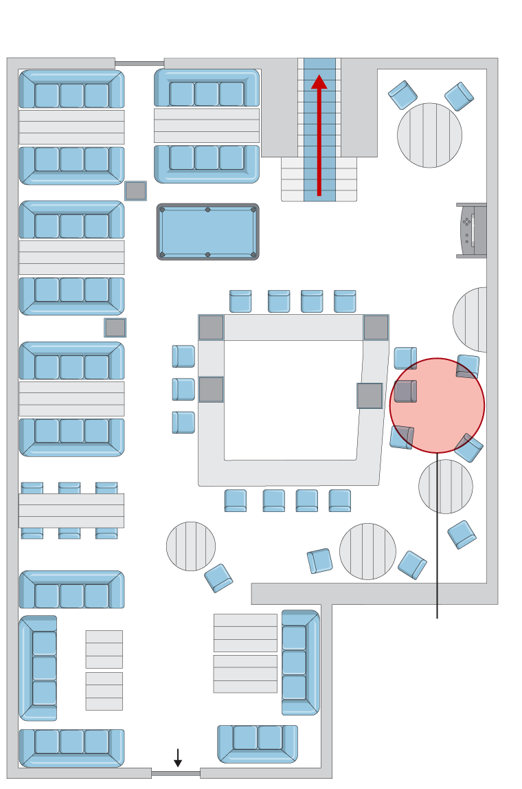 staircase to main bar above