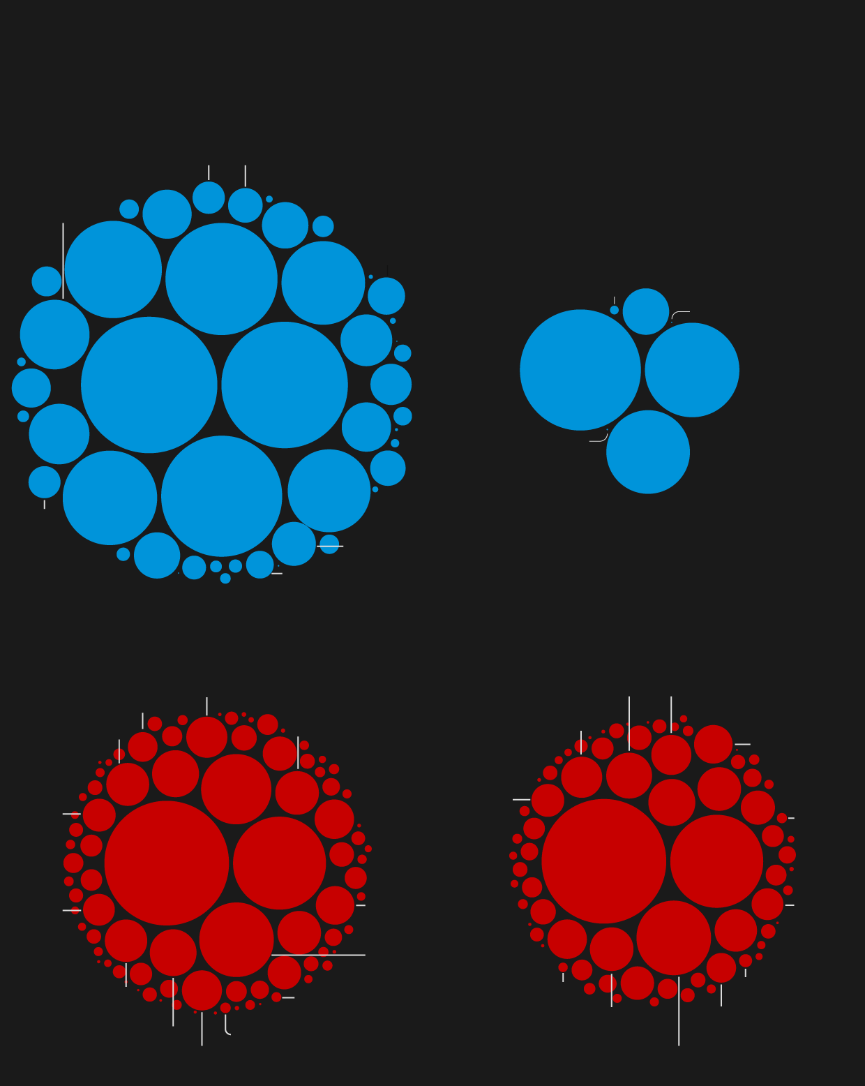 Countries that have US-China index scores that show strong alignment with US or China, circles sized by GDP