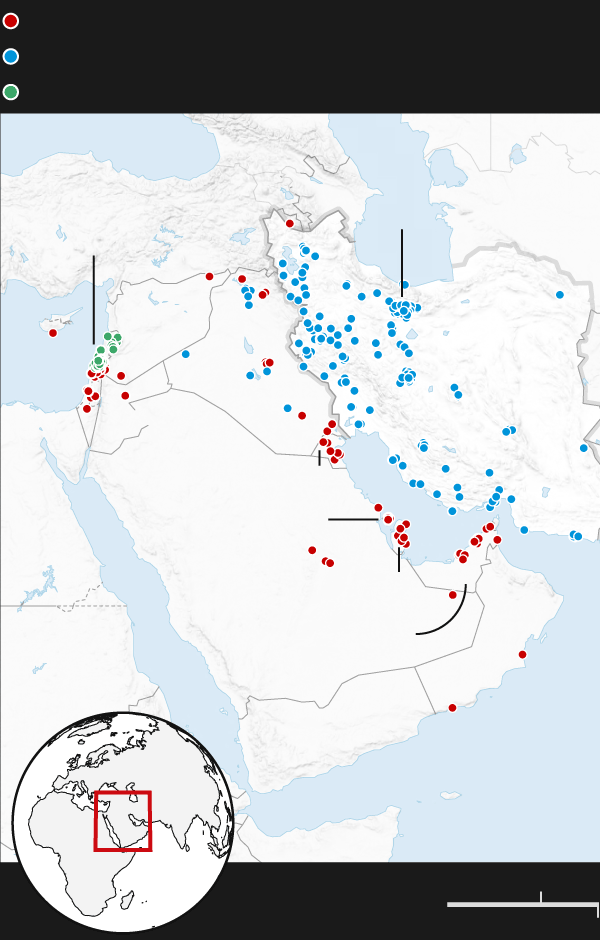 Strikes by Iran and its proxies, 28 Feb - 7 Mar